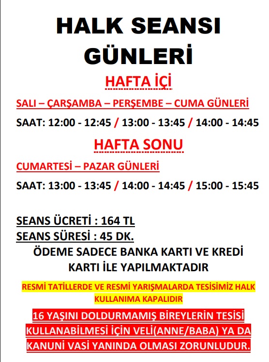ATAKUM OLİMPİK YÜZME HAVUZU ÜYE SEANS PROGRAMI